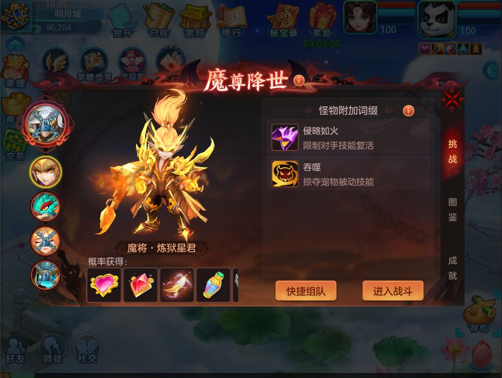 1)8月3日维护后至8月27日开启魔尊降世活动,服务器等级≥90级开启;