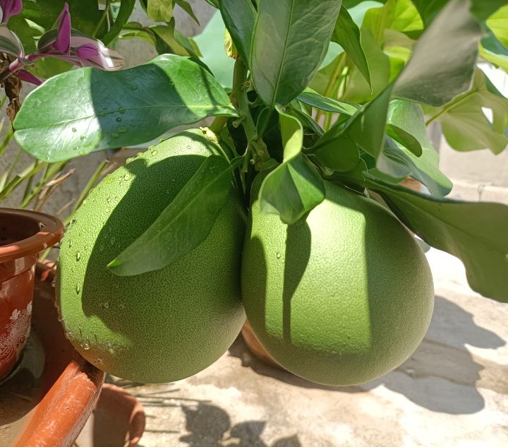 今天中午爸爸问这个橘子为什么长这样,是不是柚子啊。(因为当时带回来人家说这是橘子)让我拍照搜搜看,我凑近注意到他的叶子,一小叶一大叶串联,突然灵光一闪,在老农答题经常看见它,单身复叶,于是很确定的说这是柚子。