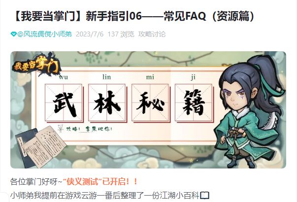 【我要当掌门】新手指引06——常见FAQ(资源篇)