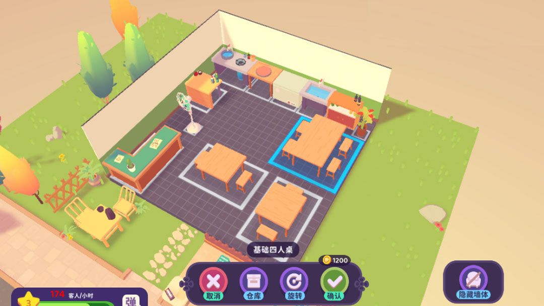 装修:之后我们就可以将新的地块利用起来了,摆上好看的桌椅装饰,通过桌椅装饰提升餐厅环境。