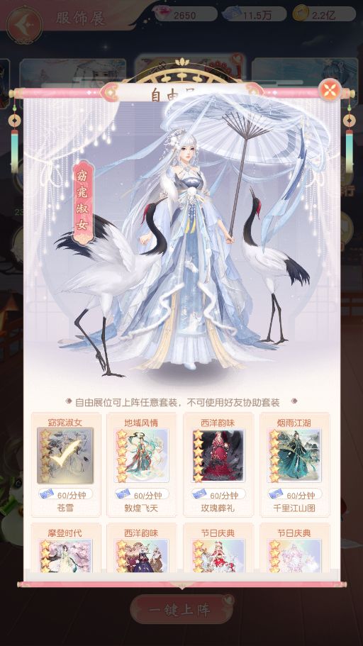服饰展内有多个展位主题,每个主题下掌柜可从符合主题的服装套装中选择3套服装进行展示,一次只能举行一个主题的展览,并获得收益。