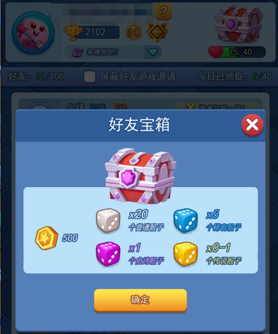 添加好友可以互赠友情点,累计获得40次友情点可开启一次好友宝箱。