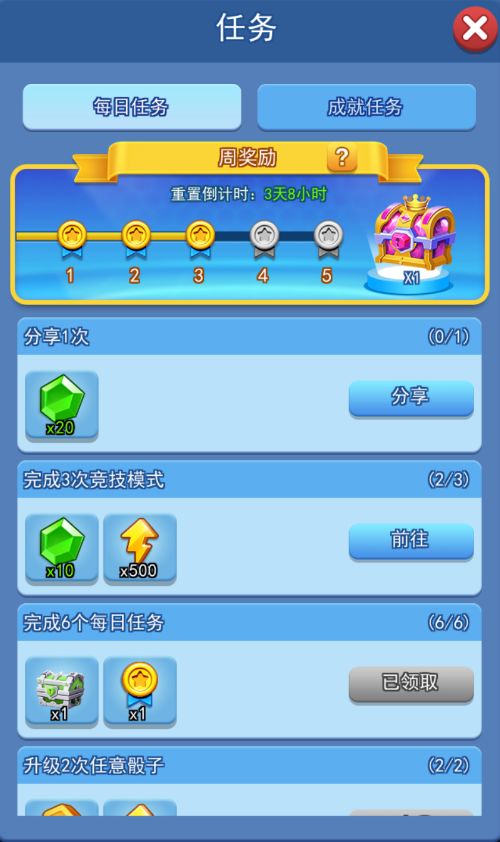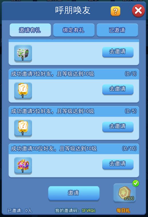 在呼朋唤友板块里成功邀请好友可以获得传说骰子以及宝箱。