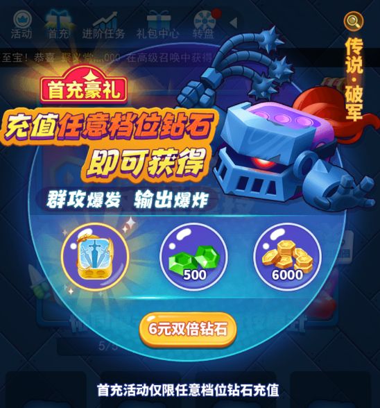 首充任意档位钻石即可获得传说-破军。