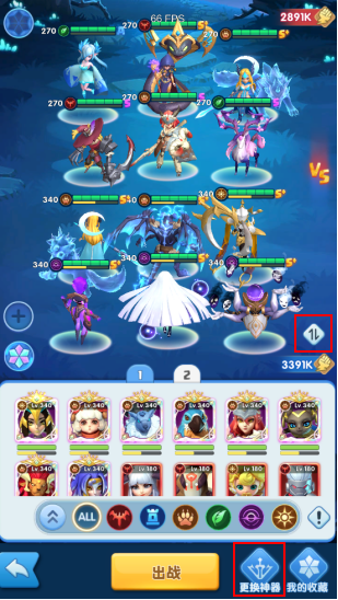 3、 荣耀擂台(防守)新增更换神器及快捷更换英雄功能