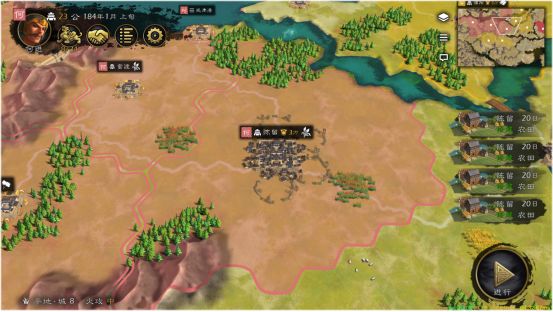 首先,每座城可建造的农田数量不一样。除主城外,主城覆盖势力范围内的府、关也可以建造农田,但建造数量会占用该主城可建造的上限。随着机构中科技的升级,可建造的农田数量上限也会增加。