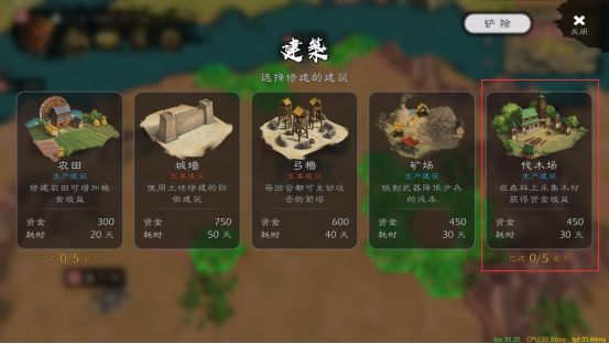 首先,每座城可建造的伐木场数量不一样,随着机构的升级,可建的伐木场数量上限会增加。