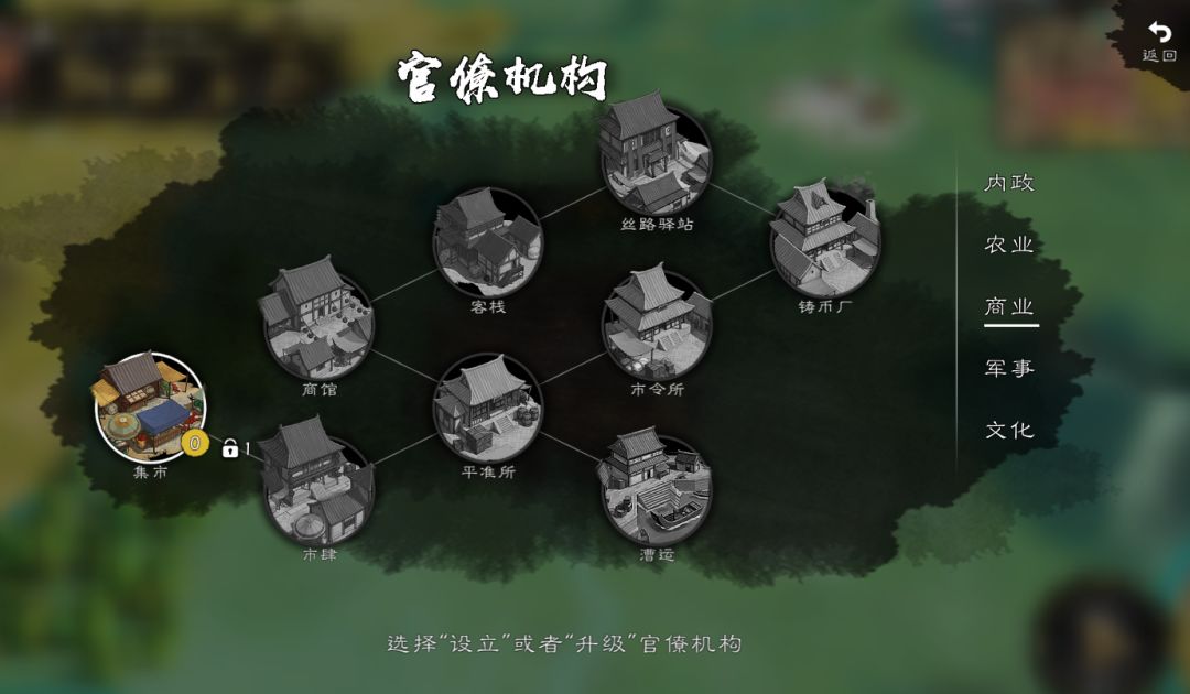 市集【每级城市资金收益+3%、满级1、每级耗时60日】