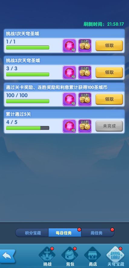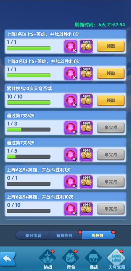 注:仅有每日免费竞技的次数可获得奖励,额外购买的竞技次数将无法获得奖励(额外购买门票的竞技场次无法获得钻石奖励,但任务进度会被计算在内)