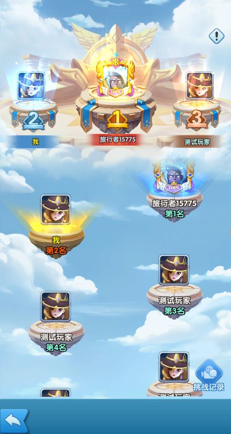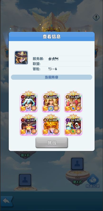 4.玩家点击其他玩家的头像即可查看玩家的阵容信息,并进行挑战;玩家只可挑战自身上方显示5名内的英雄。挑战胜利双方排名互换,失败则双方排名不变。