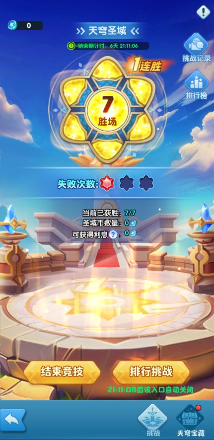 2.每次竞技(门票)中包含7轮挑战,全部挑战胜利即可通关,竞技过程中,失败3次则会提前结束该次竞技