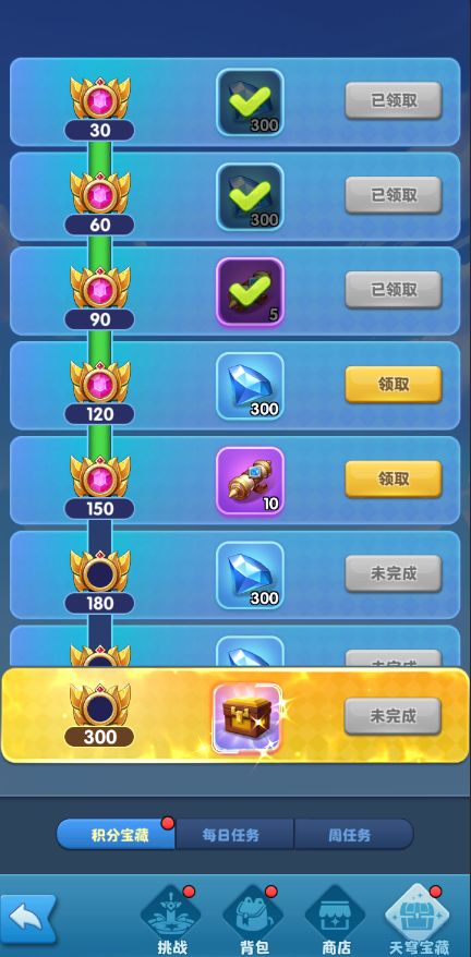活动中有每日任务、周任务及积分宝藏,完成每日任务与周任务可获得奖励与对应积分,解锁宝藏奖励