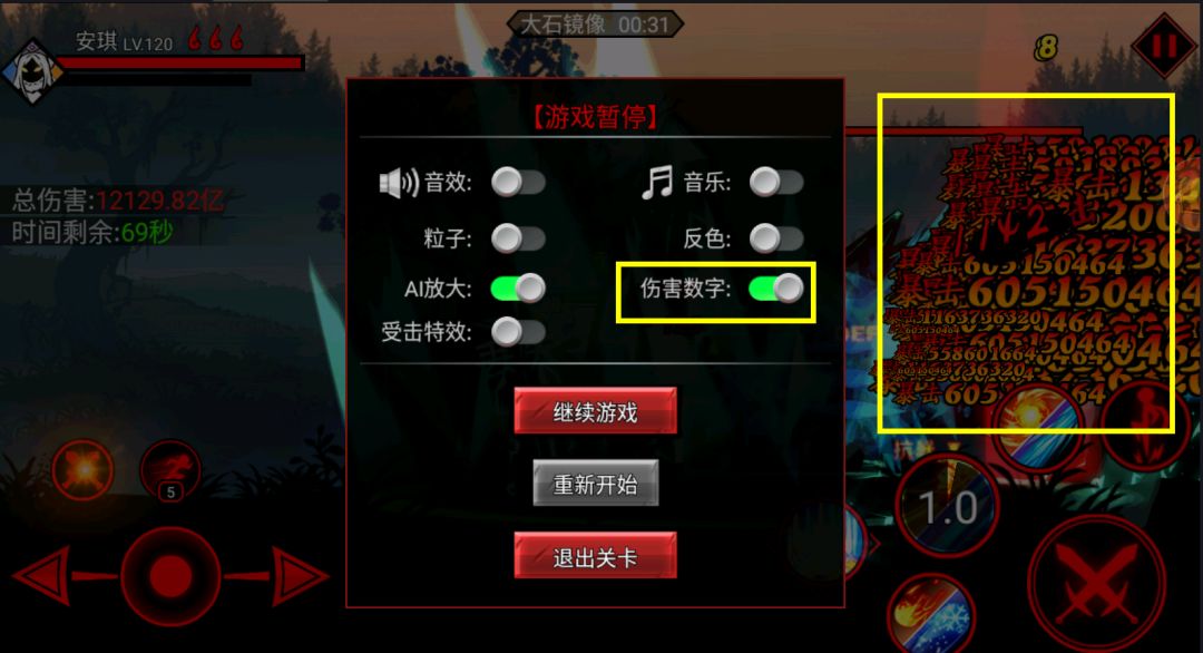 需要打开设置中的【伤害数字】,红色数字表示暴击,黄色数字表示未暴击。