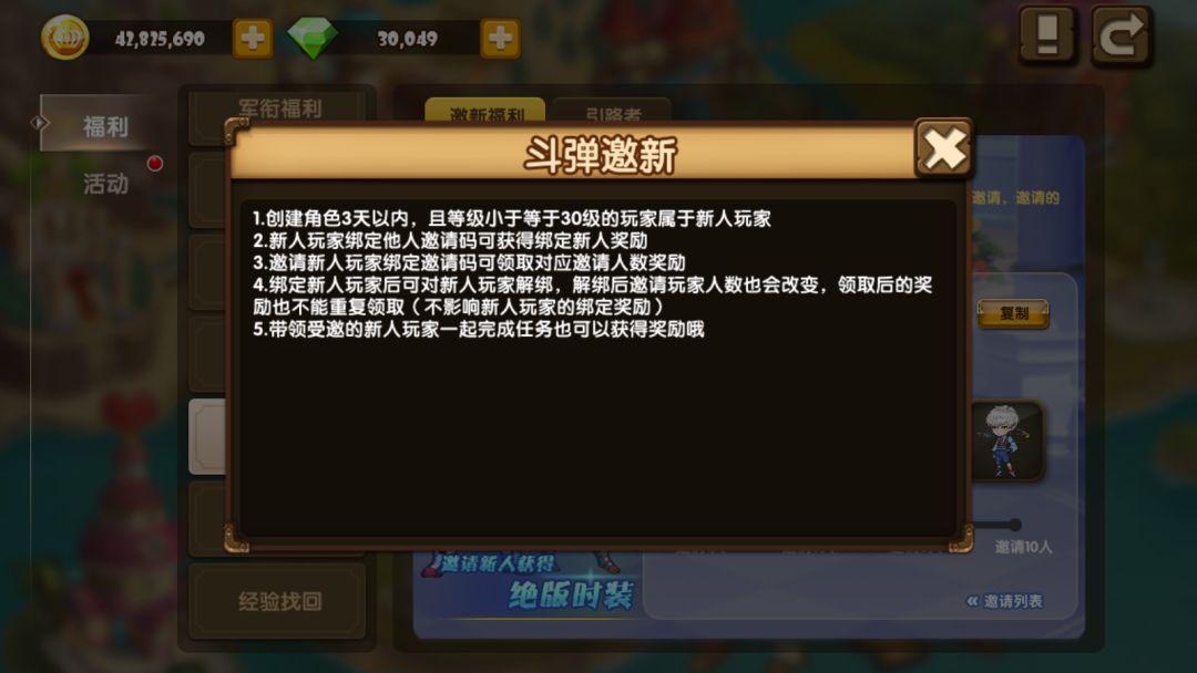 需要注意的是,新人玩家要求是创建角色3天以内且等级要求小于30级,萌新们创角后要尽快输入邀请码哦!