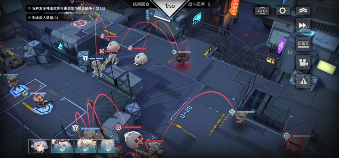 7.中间是一通乱打,注意两个盾后面的主要任务是帮突击和盾队友挡伤害,别让他仨被打掉,希尔达/凯瑟琳/安妮/英仙座都可以撤退,
