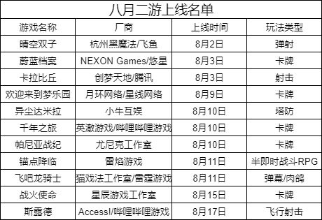 8月二游相约扎堆袭来,腾讯B站均入场上演“群雄逐鹿”