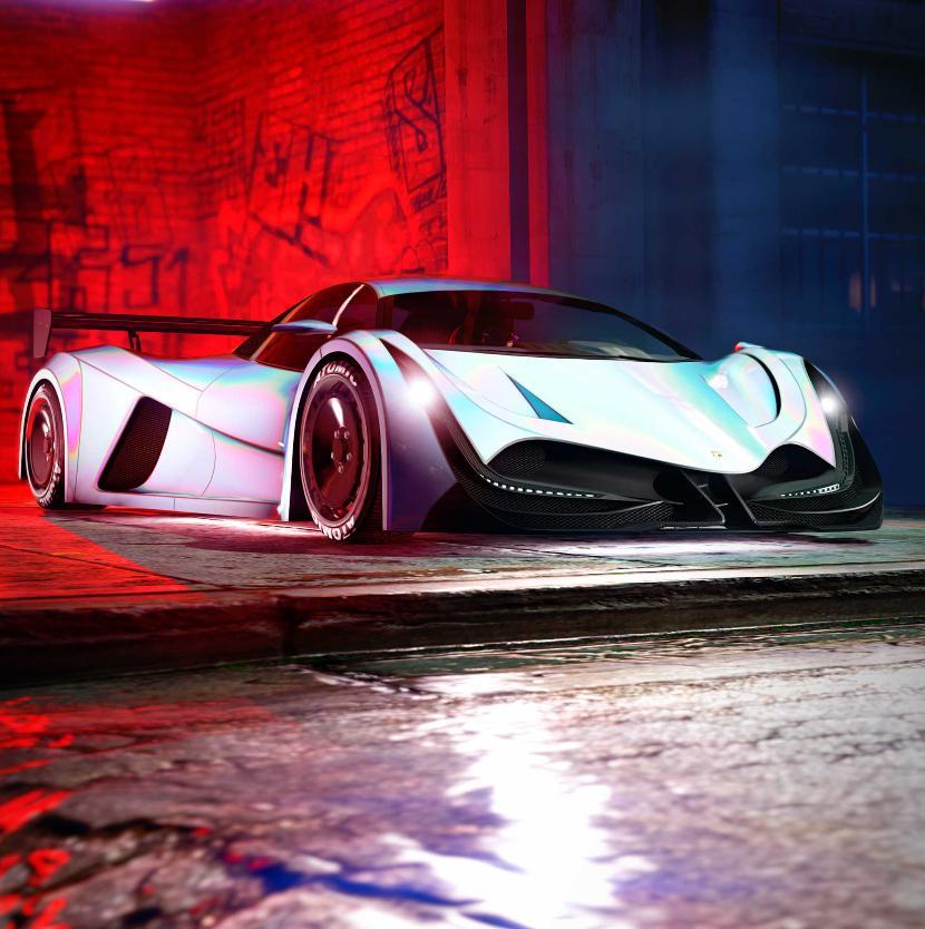 看看阿浩可以对一辆未来概念车做什么:前往洛圣都车友会内的阿浩特别工坊,查看本周的高级测试载具,这是一辆超增压版本的普林西比蹂躏者8(超级跑车),经过调整后提前几年进入了未来。