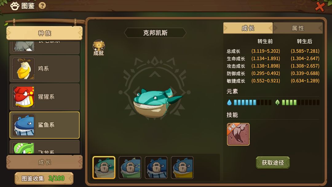 鲨鱼系自身总成长较高,自带天赋技能盛宴可以让其拥有近战吸血能力,战斗中的续航能力将有进一步提升,总体来说值得一练。