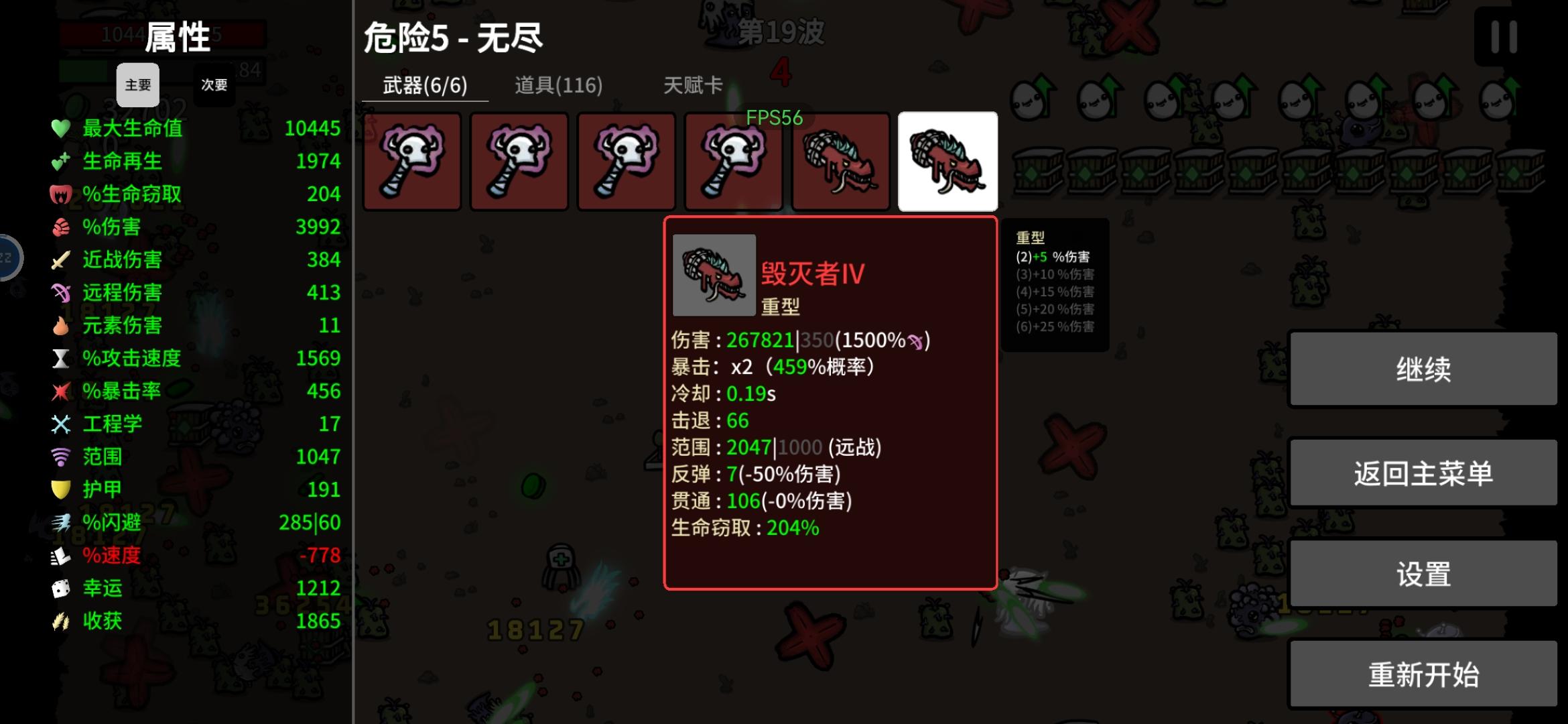 20万+的血,将近400级,近10万的伤害加成,恶魔确实牛!!!想刷的话我还可以无限刷下去100万血都不是问题,可以越到后面收获扣的越厉害,成长加成有BUG会回扣最大生命值。懒得继续刷了,无聊再来感受一下割草的乐趣!有兴趣的朋友可以来找我要攻略!!!