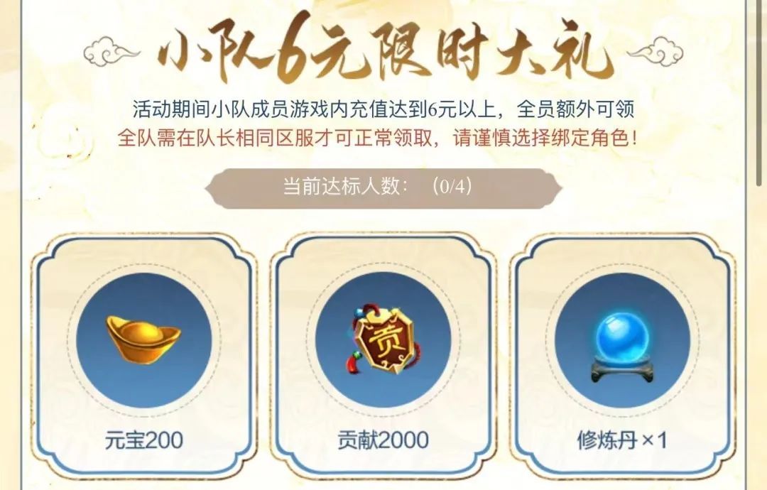 备战小队组成后,少侠们可领取不同类型的备战物资奖励,提前获取这些物资奖励,新区可是大有用处!