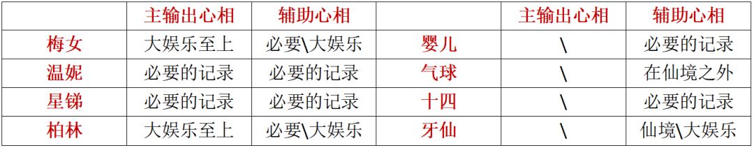 【心驰神往】:这个就不用说了,五星的容易增幅满,加上触发特效简单,性价比巨高,甚至比你一些6星心相都强。随便丢给第四人。
