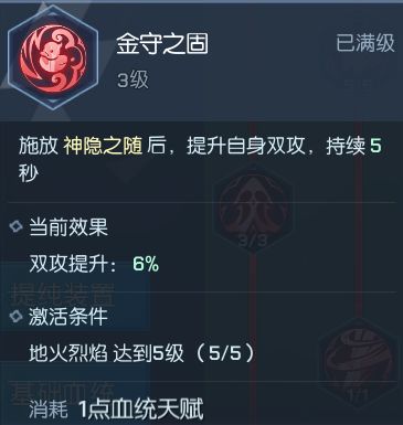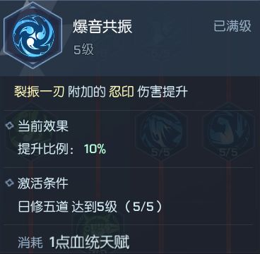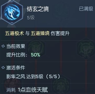 作为提升【五道极术】和【五道臻境】伤害的血统天赋,是近战流派必点的血统天赋,远程流派可以忽略。