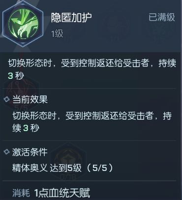 这项血统天赋作用于切换形态,可以将受到的的控制返还给受击者,可以说是簌职业必点的一项血统天赋。
