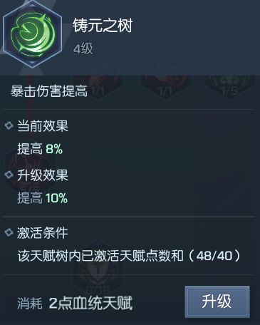 这项血统天赋中提升的暴击伤害为为常驻效果,在伙伴和龙语等非常驻暴伤的加持下,这部分的收益会有所降低,这里只推荐面板暴伤低于180%的情况下点亮它。