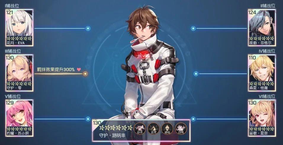 这套伙伴搭配主要用于增加防御,减少伤害以及增加少量的控制,如果觉得控制方面偏弱,可以将主战换成黑潮·路明非;在团战环境中,也可以考虑将灼耀·苏小妍更换成暮歌·绘梨衣。