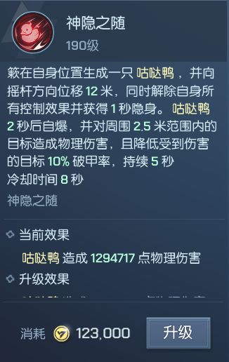 【神隐之随】是个位移技能,且自带隐身1秒,冷却时间为8秒,配合深层血统直接减5秒,只有3秒冷却,而且还带有减破甲率!
