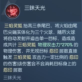 【结灵之契】可以召唤灵狐,对于绒毛控十分友好,只是技能冷却时间比较长,可以配合充能的【分身炽影】刷新【灵心业火】,持续叠加忍印,这样就能获得不俗的持续伤害能力。