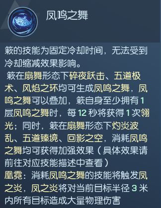 了解完【凤鸣之舞】的被动之后,我们再来看看簌的扇舞形态技能。