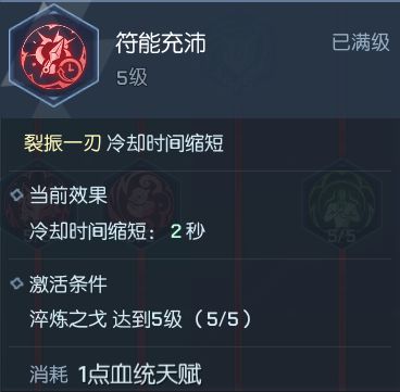 2.血统“充盈之魄”能减少裂振一刃冷却时间50%,实际上在与深层血统“符能充沛”共同作用时,优先计算的是血统“充盈之魄”的冷却时间,最终【裂振一刃】的冷却时间会被缩短至1秒;