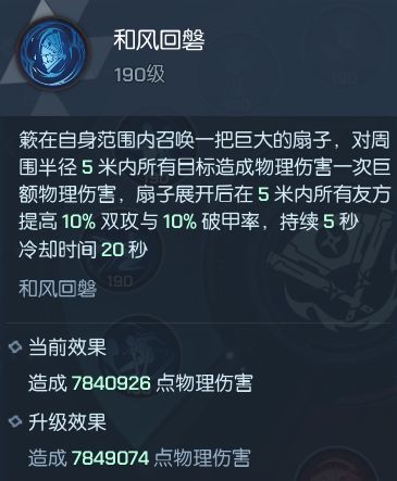 【和风回磐】虽然是一次性的范围伤害技能,却拥有为自己和队友增加10%双攻和破甲的效果。在组队情况下,无疑是一个非常好用的技能。