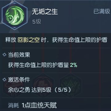 在释放【回影之空】时获得生命值上限护盾,对于近战流派十分必要,远程可以按需选择是否要点亮。