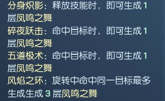 这项天赋能够自动叠加被动【凤鸣之舞】,而翎光状态必须要至少有1层【凤鸣之舞】才会触发,点亮这个天赋可以避免在一些特殊情况下,没法叠被动导致无法享受翎光解控和霸体增益效果的情况,因此是一个必须点亮的血统天赋。