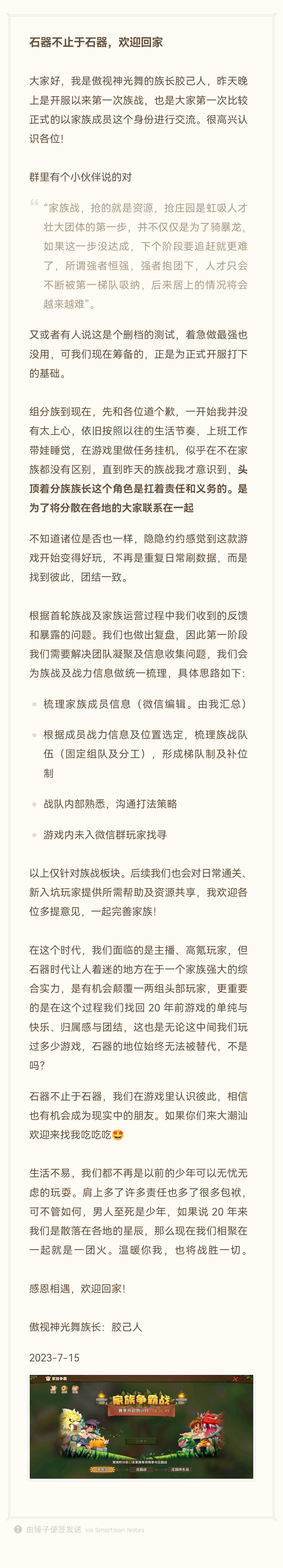 这是写于2023-7-15第一次族战后的感想,也是用心体会游戏的开始,也是对游戏开始思考的源头