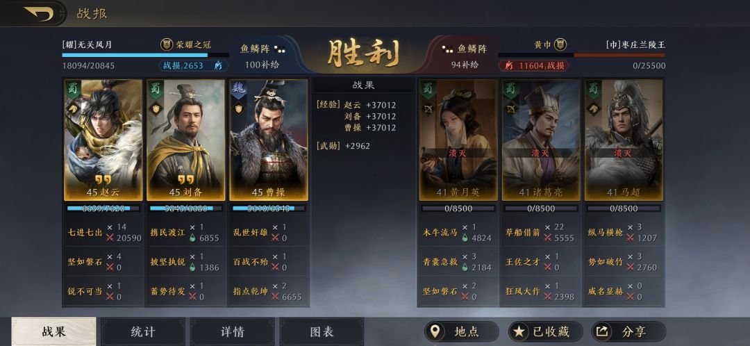 这队缺点就是没啥硬控,遇到金书桃源是有点难打的,但是至少也能55开。优势就是指挥队9个技能只有2个主动,可以说是谁都能打。废话不多说上战绩。