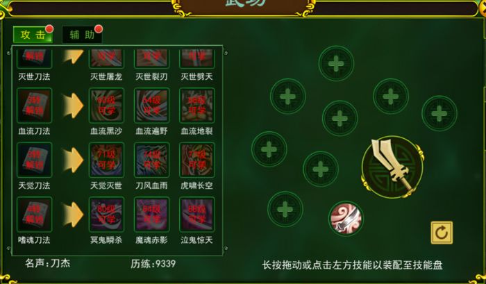 加点思路:暗影绝杀(20)- 真武绝击(20)- 霸气破甲(20)- 四两千金(20)- 狂风万破(20)- 力劈华山(20)- 摄魂一击(4)