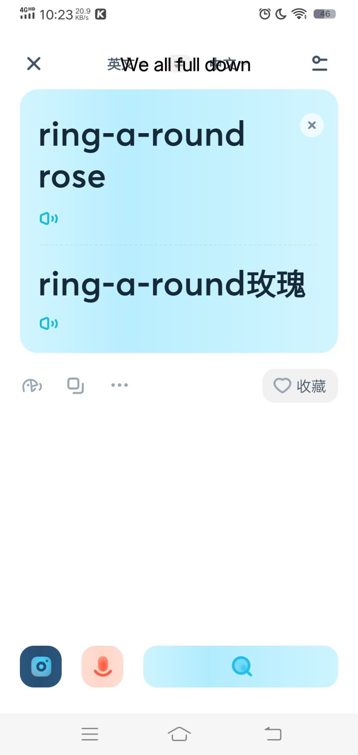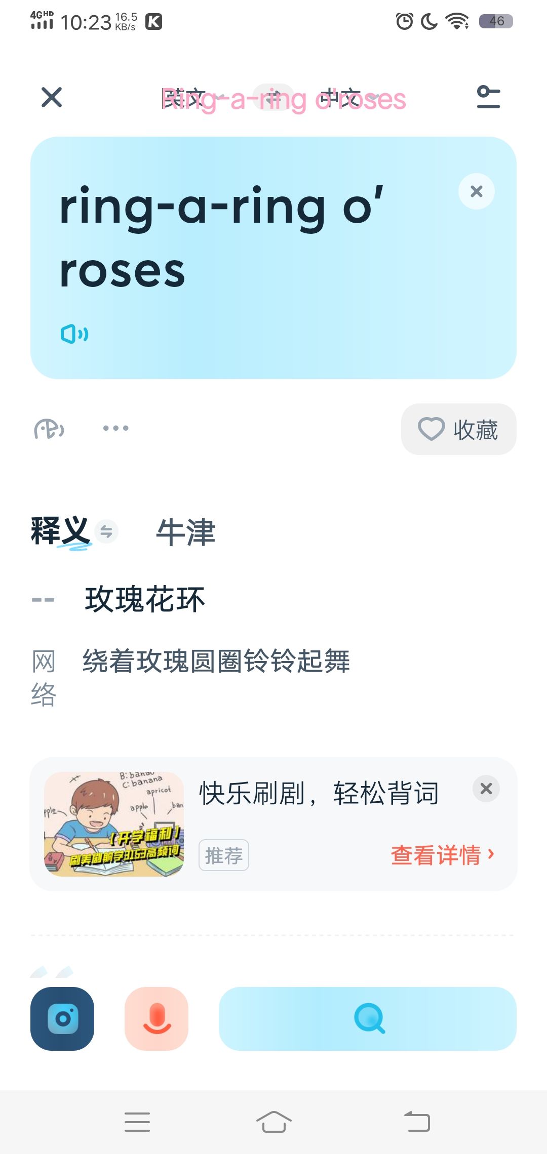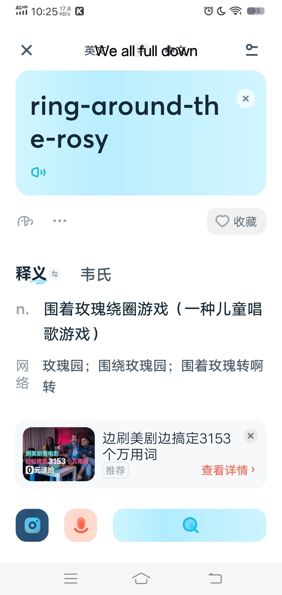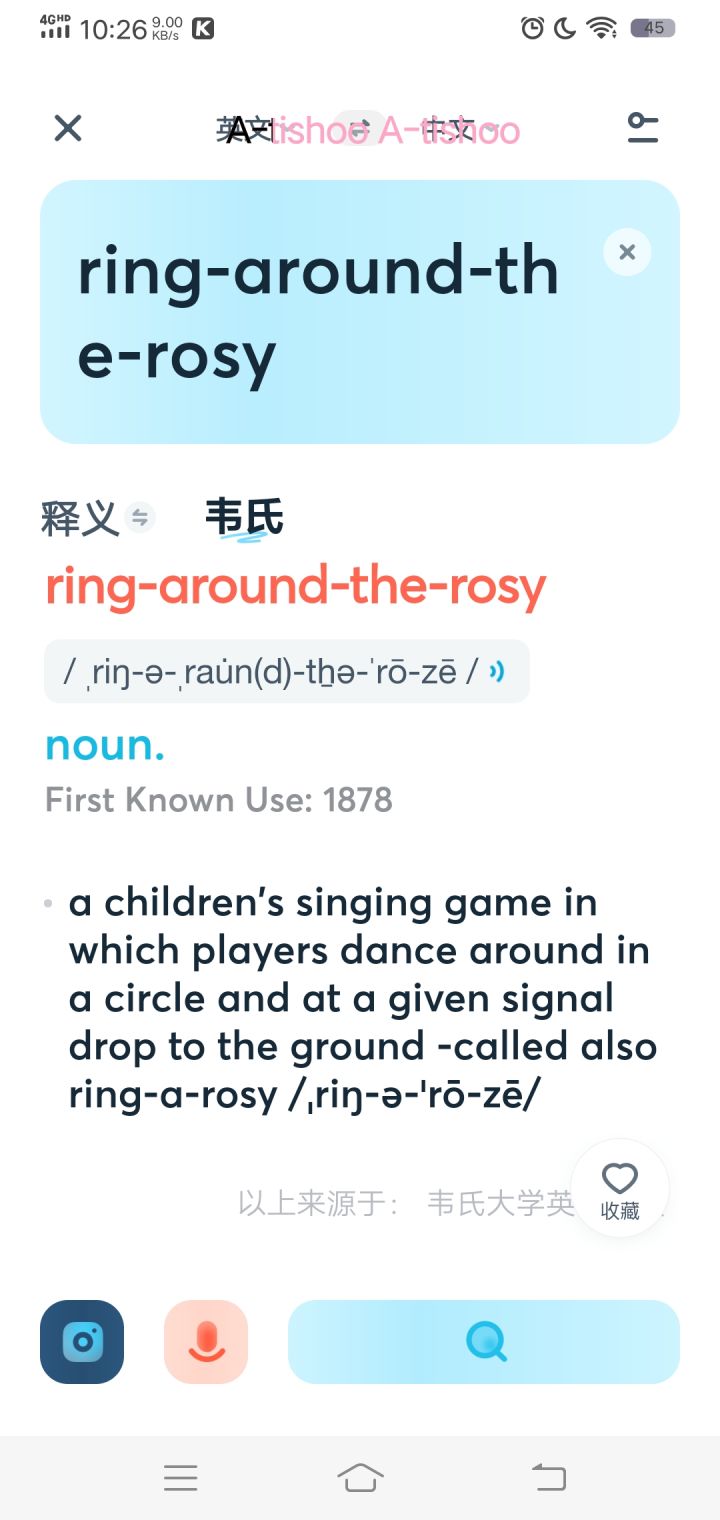 这个翻译说不通,只能翻译出玫瑰这个词,前面的英文直接照搬下来——“ring—a—round玫瑰”
