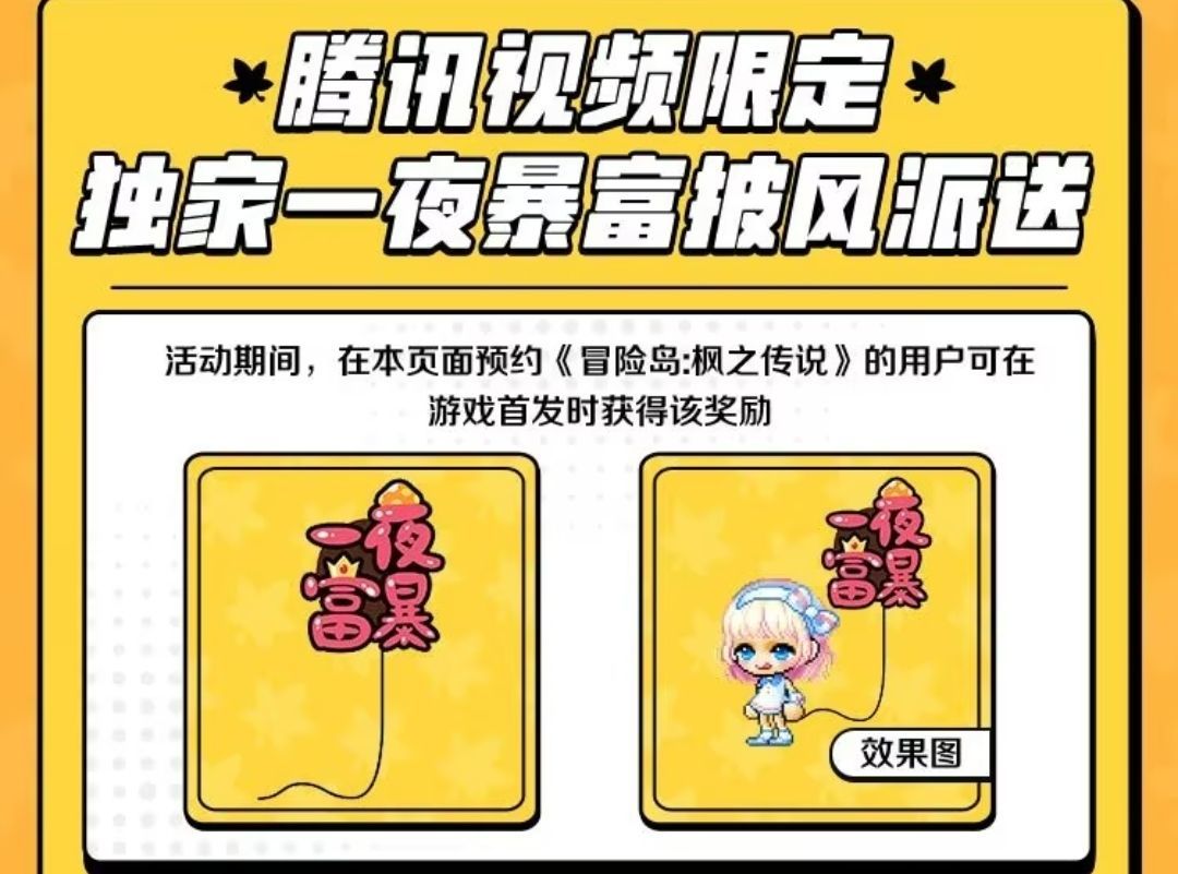 活动期间,在TX视频APP预约冒险岛,即可获得限定一夜暴富披风哦!独家限定先到先得哦!除此之外还有专属宠物和道具发放哦!