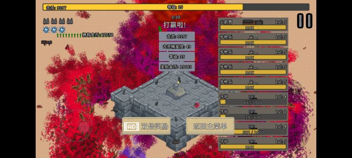 再就是局内升级了,特殊升级拿武器就行,如果不玩蜂群火箭的话就不要拿投弹手,装一发打一发的火箭炮不触发投弹手效果,普通升级优先点三级换弹,因为换弹快就等于射速快,再然后就是副武器的范围和冷却了(优先冷却),副武器伤害可选可不选,副武器的作用主要是抵消远程怪的导弹,输出还是得看手里的火箭炮,再就是武器伤害,没有护甲和冲击波的时候可以优先考虑一下护甲和冲击波,护甲有一层保命就行,其他时候升级没好的选项的时候再选护甲,冲击波捏两到三个就够了,用了之后记得补充(一般到了后期护甲和冲击波都会捏好几个的,因为有时候升级就是没有好的升级选项)
