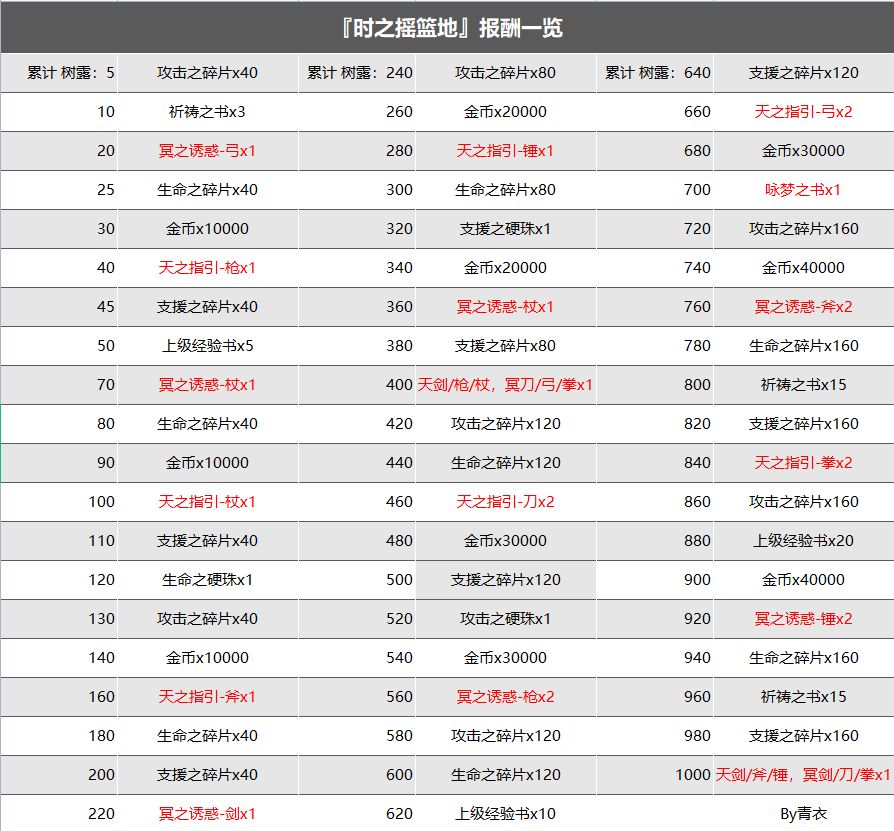 获得素材奖励,累积到达一定数量时,可以找研究员兑换奖励,列表如下
