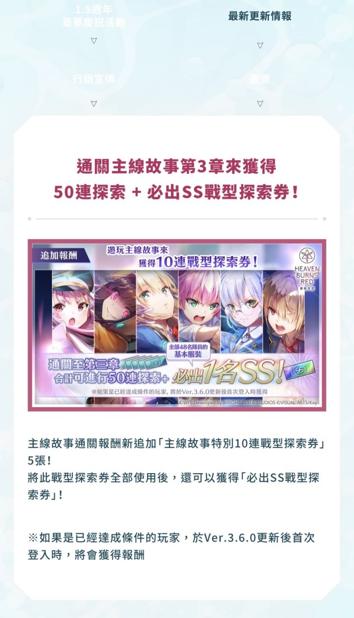 6.通关第三章的玩家获得免费50抽和一张ss必得券