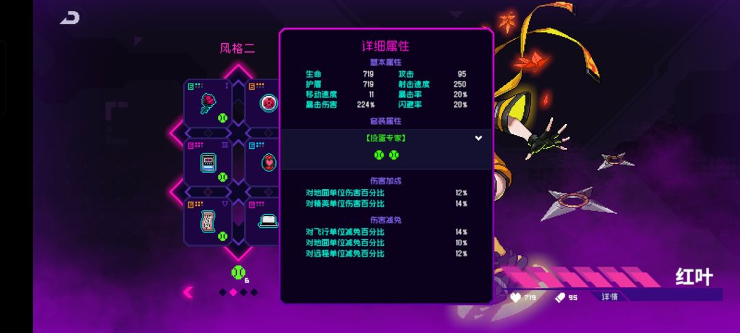 红叶的手里剑可以非常好的补充前期的输出空档期,而且红叶的技能是可以穿透怪物的。不会被封禁穿透能力,唯一的缺点就是红叶在这个模式是没有卷轴的,问了客服说是因为红叶的被动把护盾转化了。