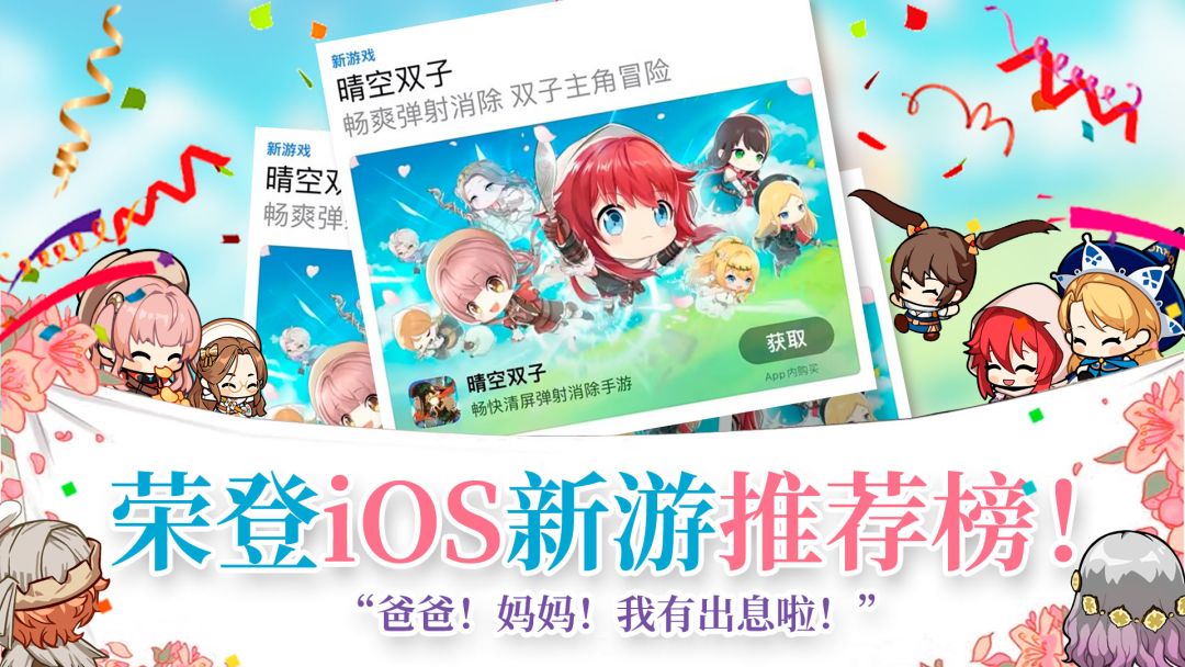 最后要和冒险者们分享砖砖今天最最最最最开心的事情!那就是咱们《晴空双子》荣登iOS新游榜推荐榜单啦!!啊啊啊啊!撒花✿✿ヽ(°▽°)ノ✿!爸妈!砖砖有出息啦!(咳咳,整理仪容仪表)