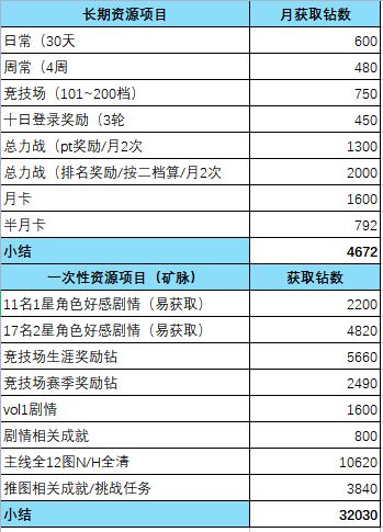可以看到,首月够肝的话是可以获得三井多的钻,再加上开服官方福利的话,短期内是没有要氪钻需求的
