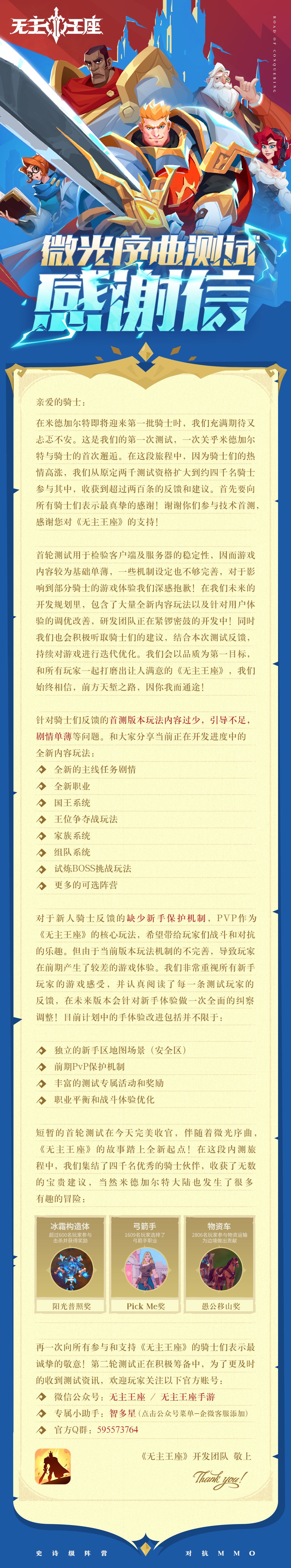 无主王座丨首测收官感谢信