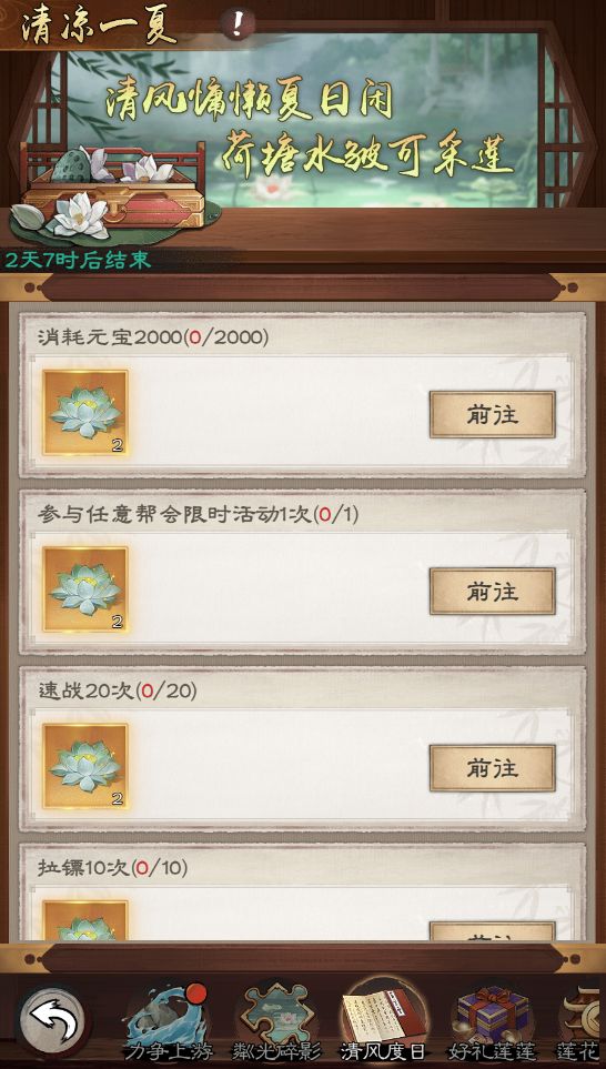 完成指定任务获得玉蕊金莲奖励,任务每日0点刷新。
