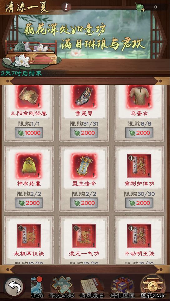 消耗玉心莲子,可以兑换融合卷轴、神品功法、神兵利器等奖励,更有新功法【金刚护体功】等你来拿!